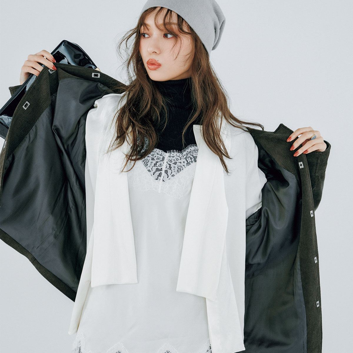 梅澤美波さん「タートルニット」軸の“メンズライクな黒コーデ”を品良く着こなす!