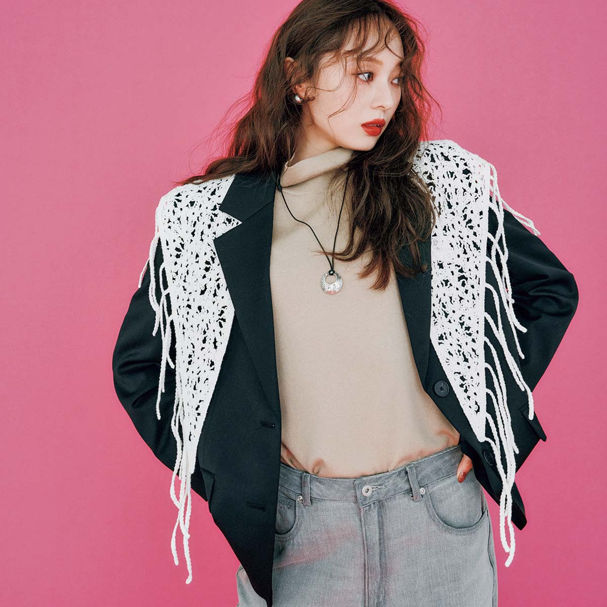 【梅澤美波さん】冬のタートルオシャレをトレンドの『ストール使い』でアップデート!