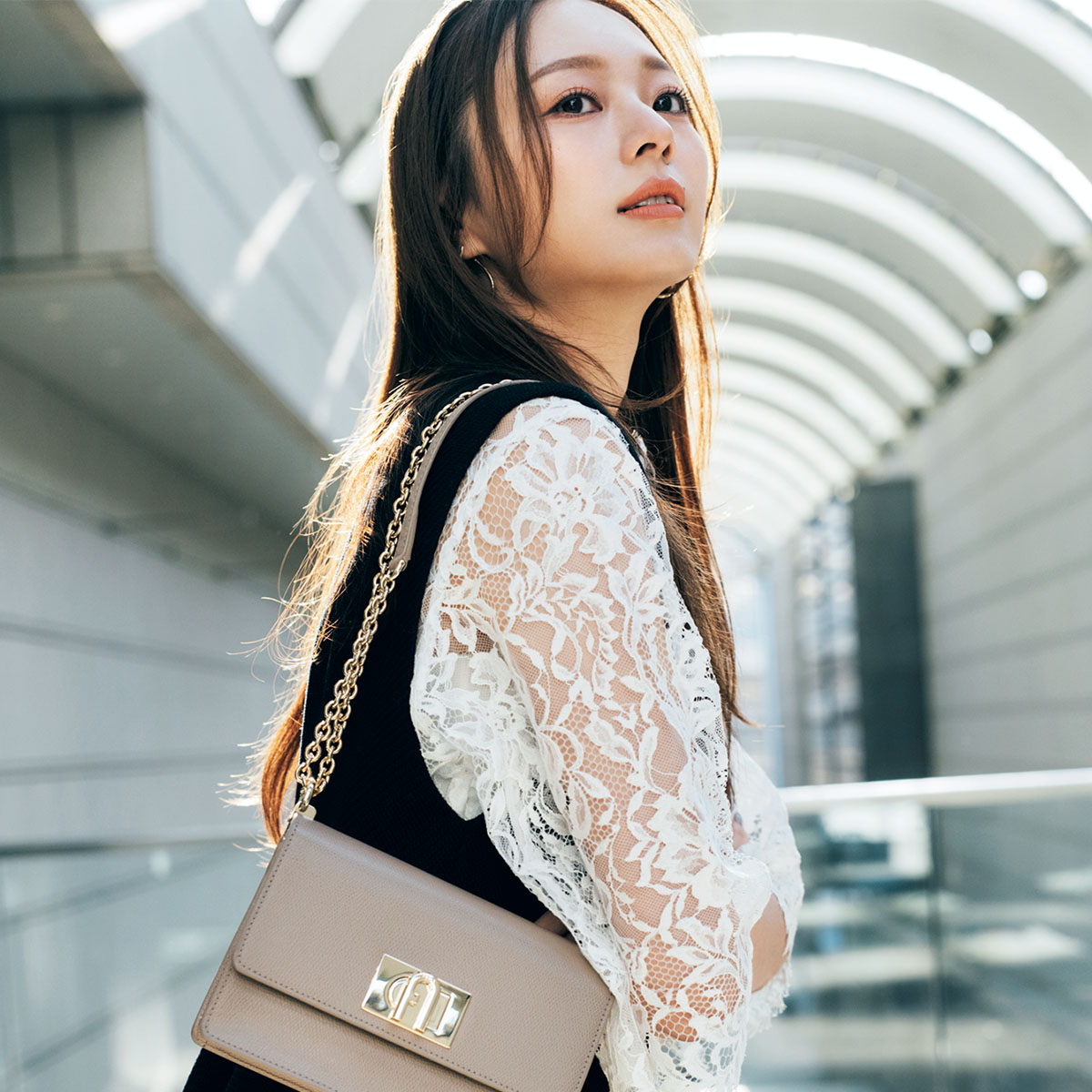 【梅澤美波さん】トレンド入り「レースブラウス」の“絶妙透け感”でオフィス映えを狙う!