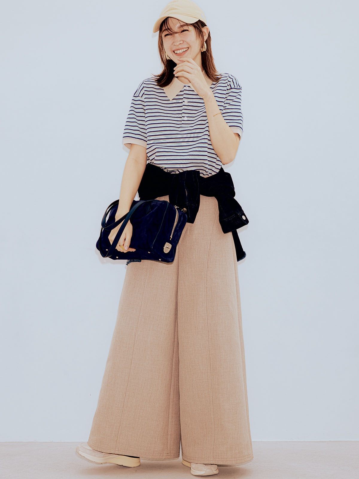 カジュアルコーデ、女っぽバッグでここまで変わる?