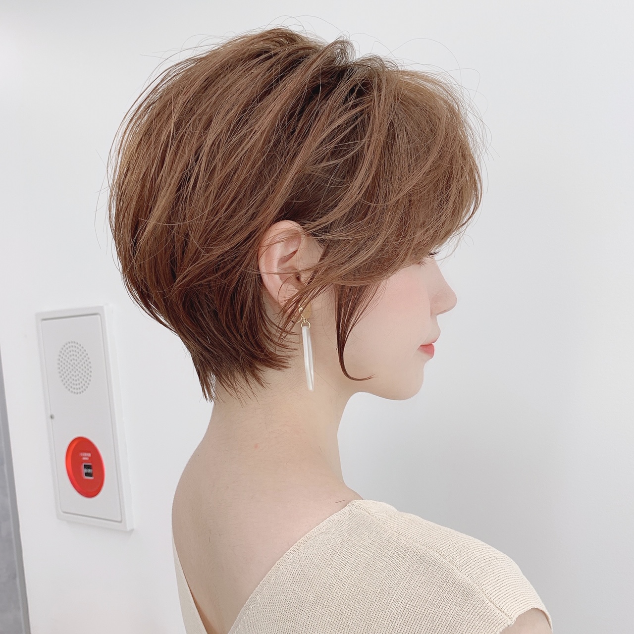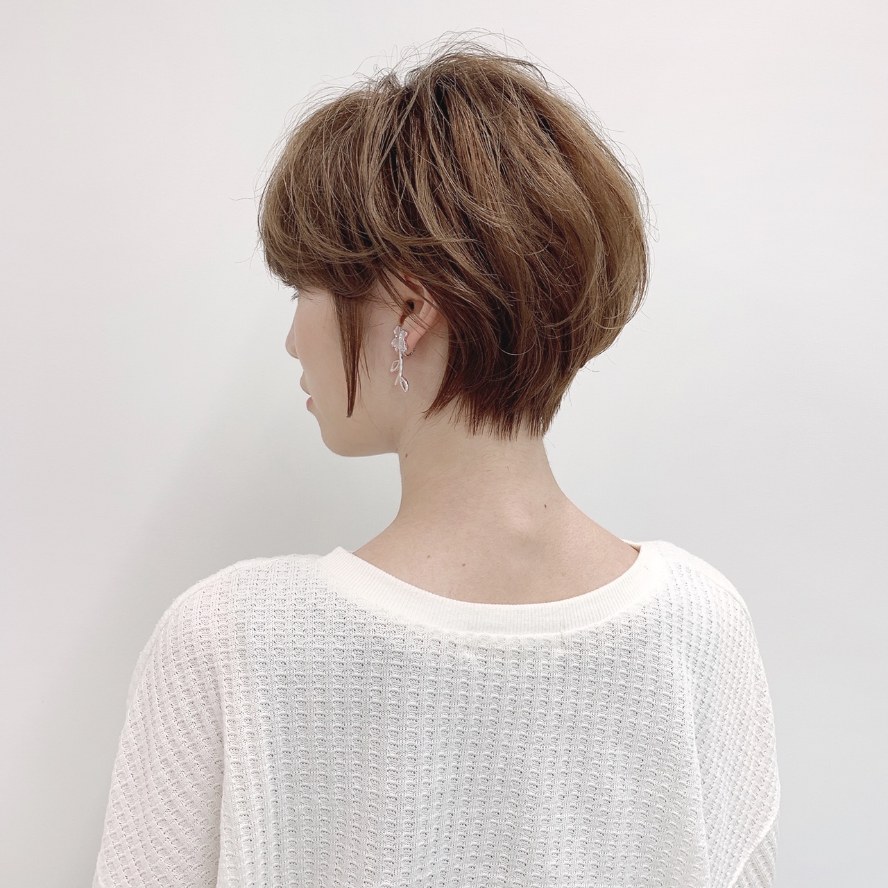 「『頭の骨格が絶壁だからショートは無理…』そう言う方も多いですが、ショートヘアは髪にレイヤーを入れることができるのでロングヘアよりも頭の形をカバーしやすく、実は絶壁の人に向いているヘアスタイルなんですよ!髪質が硬めの人は丸いシルエットに、柔らかい人はレイヤーを多めに入れて動きがつくように、カットするのがベストです」