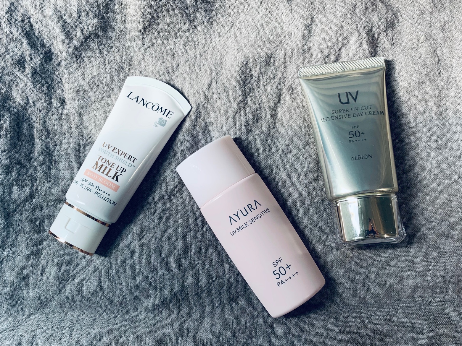 また「日焼け止めは春夏にしか使いません」という人も多いと思いますが、紫外線は秋も冬も、雨の日も降り注いでいます。だから日焼け止めは1年中必須。私はSPF50のUVアイテムをオールシーズン使っています。