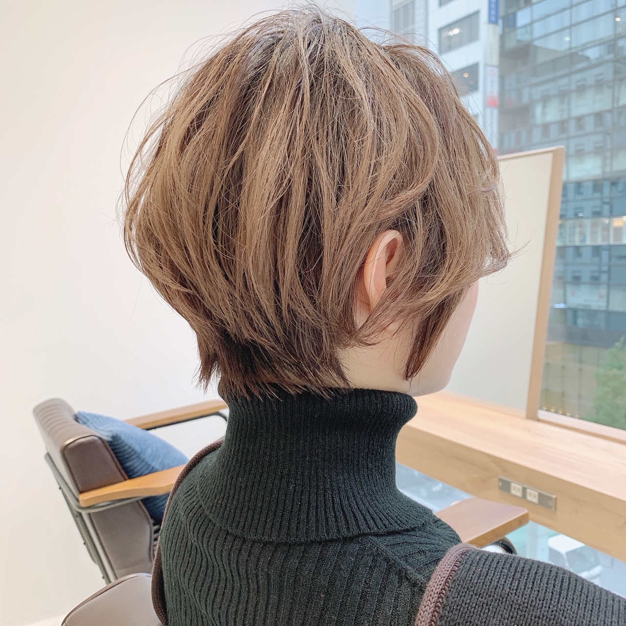 「クセ毛の人は、髪に動きが出やすいので実はショートヘアに向いています。くせ毛を矯正しようとせず、生かすことが大事。動きが出やすいように短めにカットをしますが、軽くしすぎるとパサついてしまうのである程度重さは残すように。広がってまとまらないことを心配される方は、スタイリング剤で解決。洗いっぱなしにせず、『プロダクト』のようなツヤの出るスタイリング剤でしっかりとスタイリングしてみてください」
