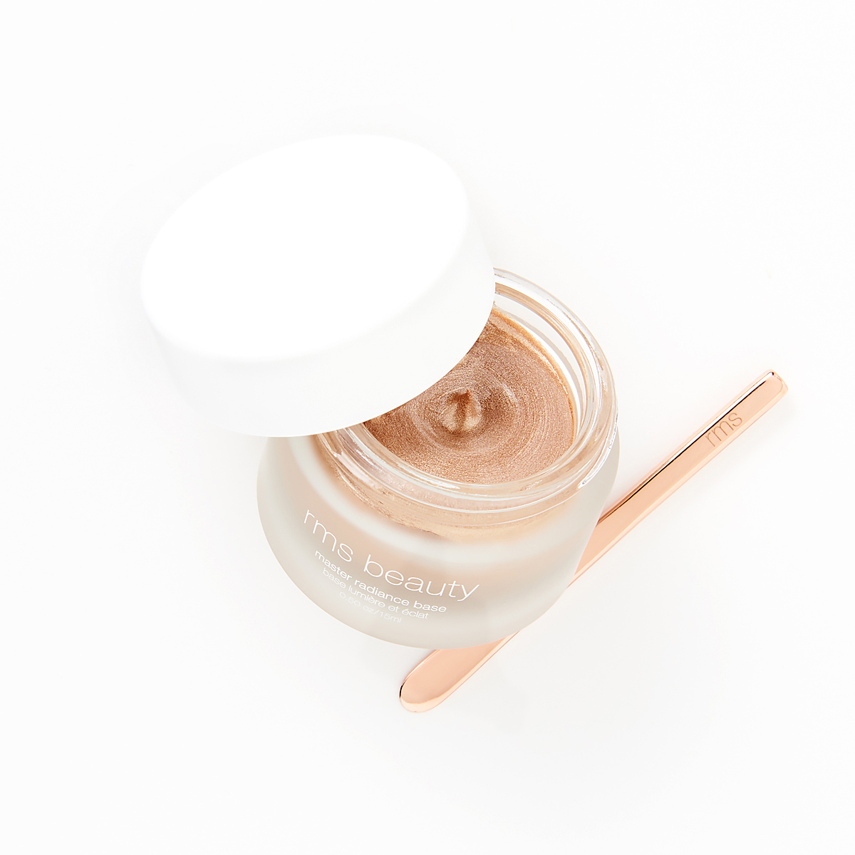 今回ハイライトとして使用したのは、9月30日に発売されたばかりのrms beautyの新作メイクアップベース。ローズゴールドの微細な輝きが肌のくすみを飛ばし、立体的で美しいツヤ感を叶えます。なめらかなテクスチャーで肌にピタッと密着しヨレにくい。無精製のホホバオイルやチアシードオイルを配合。肌に負担をかけずにメークできるのも嬉しい。rms beauty マスターラディアンスベース ¥4,000(株式会社アルファネット)