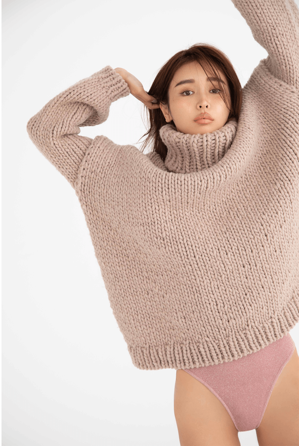 ニット¥28,000(SeaRoomlynn) ボディスーツ¥13,800(LOVE Stories/ガブリエルペコ) [右]ピアス¥31,000 リング¥135,000(ともにe.m./e.m.表参道店) [左]ピアス¥63,000(マリハ/マリハ 伊勢丹新宿店) ブラトップ¥6,818 レギンス¥12,909(ともにルルレモン) ヨガマット¥7,000(ダンスキン/ゴールドウイン カスタマーサービスセンター) ピアス¥42,000(マリハ/マリハ 伊勢丹新宿店)