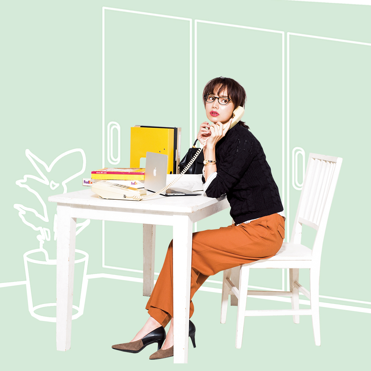ルシュカ/ベルシュカ・ジャパン カスタマーサービス)パンツ¥19,000 (ミミ&ロジャー)バッグ¥44,900(タスカンズ)パンプス¥8,500(ア ルテミス/アルテミス by ダイアナ 東京ソラマチ店)メガネ¥33,000 (オリバーピープルズ 東京ギャラリー)時計¥3,900(パサージュ ミニョン)バングル¥1,400(スリーフォータイム/ジオン商事)