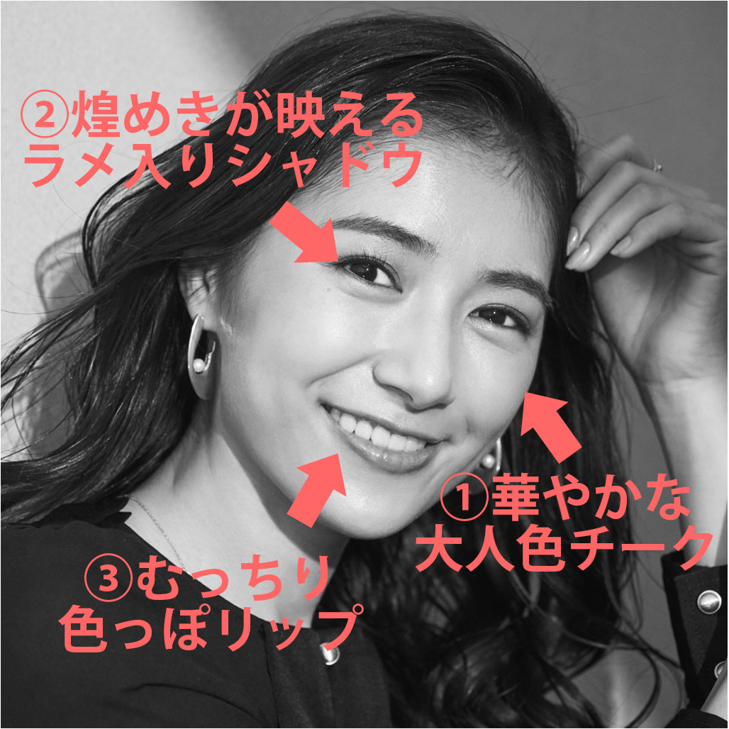 結婚を視野に入れたお付き合いに発展させるためには、お互いにときめきを感じることがマスト。女性らしい一面をアピールする美人メークに仕上げましょう。夜デートではおめかし感を演出したいので、きちんとフルメークでOK。チークやリップで血色感を添えて、目もとは瞬きするたびにきらめくラメを味方に。