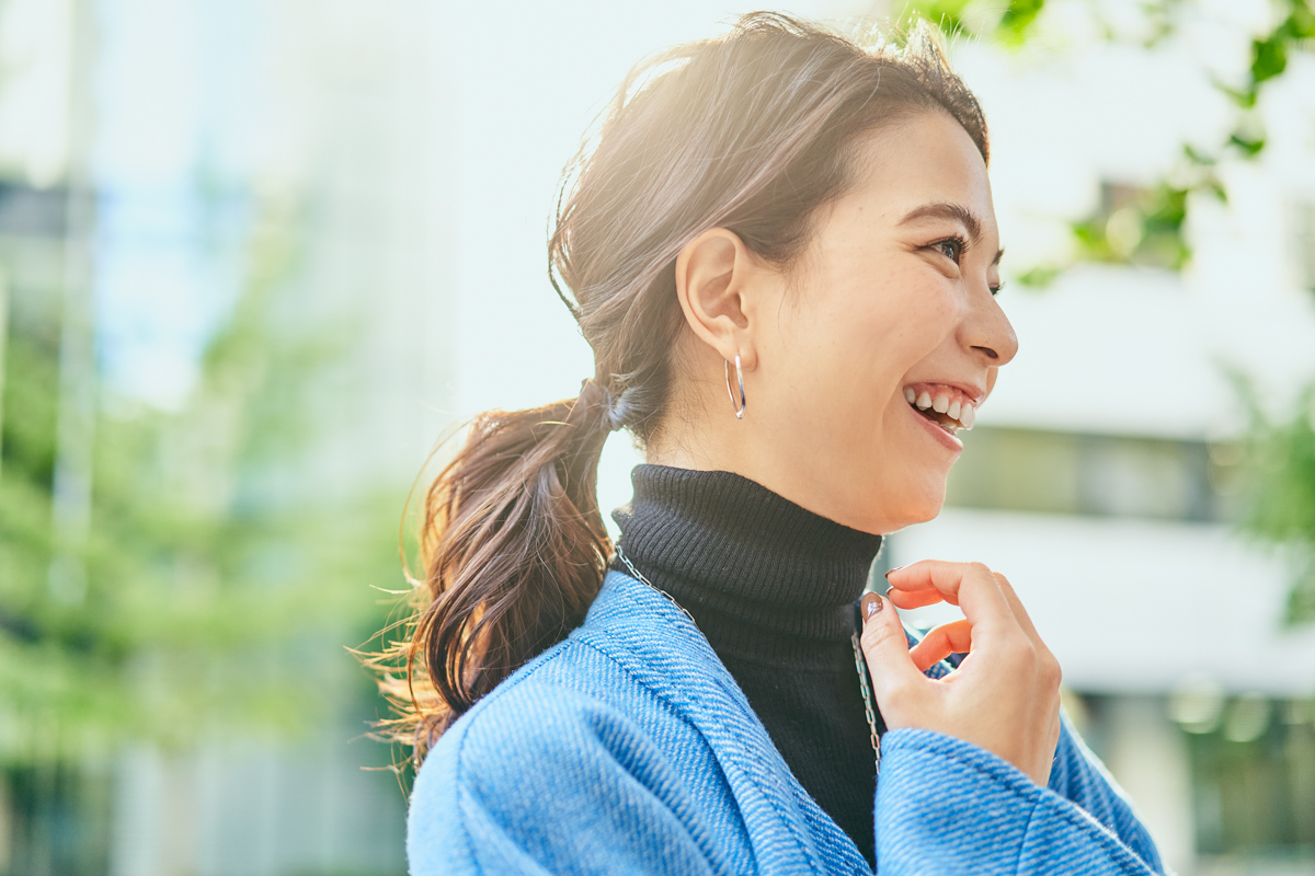 片寄せで顔周りをすっきり見せて、手軽にバランスよく