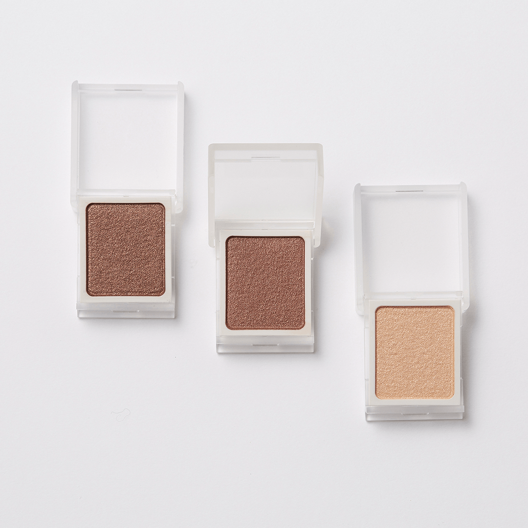 単色で自由自在に使えるパウダータイプのアイシャドウ。サラッとしたテクスチャーですが、まぶたに溶け込むようにピタッと密着します。同じく新作の『アイカラー クリームタイプ』よりも発色が強いので、ひと塗りで印象的な目元が完成。この季節に映えるトレンドカラーが揃っているところも嬉しいポイントです。[左から]アイカラー01 ブラウン、02 ローズブラウン、03 ゴールドベージュ各¥650(税込)