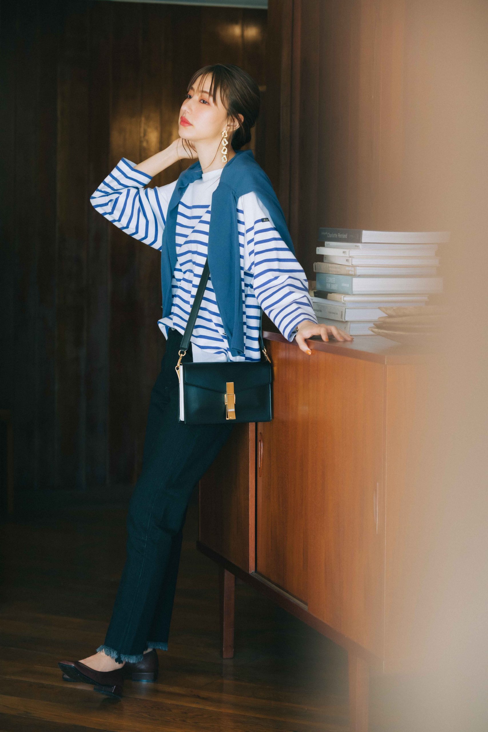 デニムパンツ¥21,000バッグ¥123,000(ともにチノ/モールド)カットソー¥14,000<ルミノア>カーディガン¥9,500<ステートオブマインド>(ともにゲストリスト)フラットシューズ¥13,500(ダイアナ/ダイアナ 銀座本店)ピアス¥7,000(メラキ/フラッパーズ)
