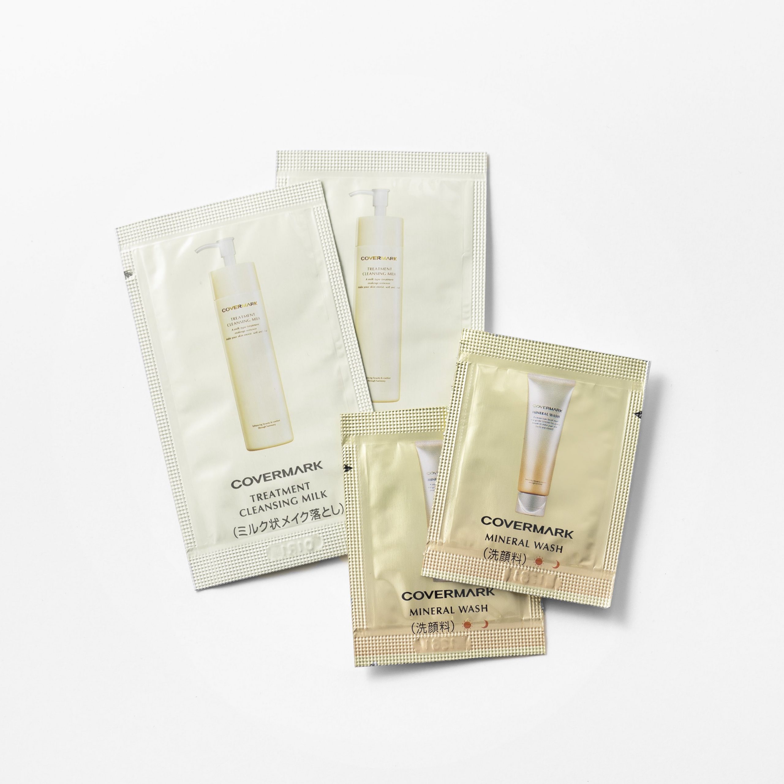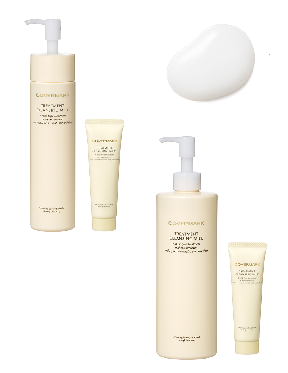 トリートメント クレンジング ミルクの現品に、約1週間分のトライアルサイズがついたセットが限定発売中。現品200g+トライアルサイズ30g ¥3,000、現品400g+トライアルサイズ30g ¥5000/カバーマーク(限定品)