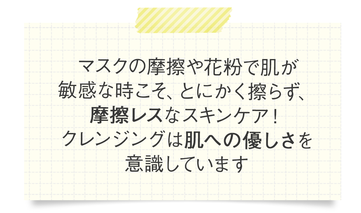 春のゆらぎや花粉、それにマスク荒れ…私たちの肌は今、とても過酷な状態にさらされています。とはいえ、今までとは違う変化もある中で、具体的には何をしたら? その方法の一つは、肌負担のないクレンジング! “摩擦レス”へのこだわりを持つかぢちゃんのクレンジング選びを参考に、肌荒れに負けない潤い肌を手に入れよう!