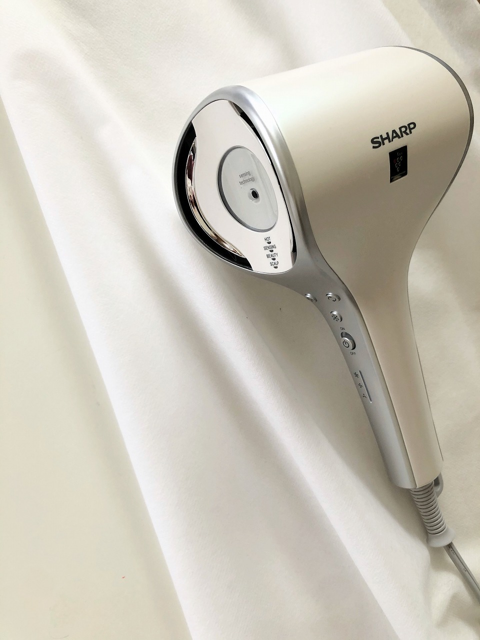 ヘアサロンのドライ技術からヒントを得て開発されたシャープのヘアドライヤー。2つの吹出口から出る風が、髪を立体的に乾かしてくれるので、速乾性が高い!ノズルが短いデザインなので大きく手を振り回す必要がなく、とても楽に乾かすことができました。また、プラズマクラスターイオンが髪の表面に水分子コートを形成してくれるので、ハリと潤いの感じられる仕上がりに。髪そのものが若返ったような触り心地になり、このドライヤーを使用した日は1日中いい気分で過ごすことができました(笑)。