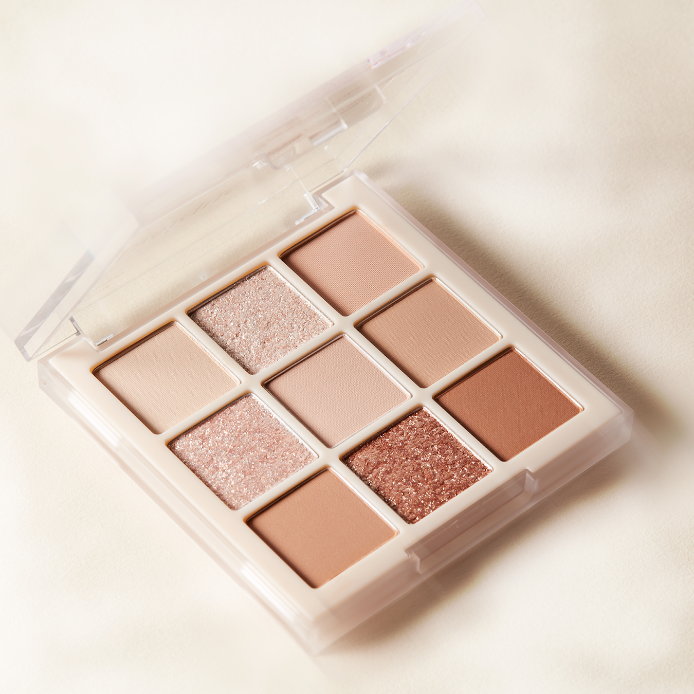 今回は肌の色になじみ使いやすい「ミルクラテ」というカラーをチョイス。単色使いはもちろん、混ぜるとテンションの違うブラウンカラーが作れるパレットです。マットやグリッター、ツヤのあるパールなど、4種類の質感が絶妙なバランスで集まります。「王道ブラウンメークが安心する」「冒険せずにアップデートしたい」という大人が使いやすい9色入り。全体的に明度を上げて、春夏仕様に遊ぶのがポイントです。シャドウパレット#07 ¥4,180(WONDER LINE)