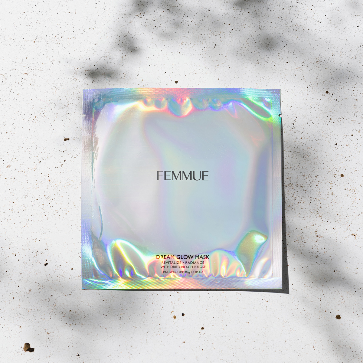 「プルプルとしたシートマスクは、顔にのせるだけで気持ちがいいんです♪ しっかりと保湿されて、塗布後は透明感が底上げされるのを実感できます。肌に栄養を与えすぎないようにしているので、毎日ではなくて、大切なイベントの日や撮影の前の日に」(茜ちゃん)ドリームグロウマスク[REVITALIZE・RADIANCE]30ml×6枚入り¥4,620(FEMMUE/アリエルトレーディング)