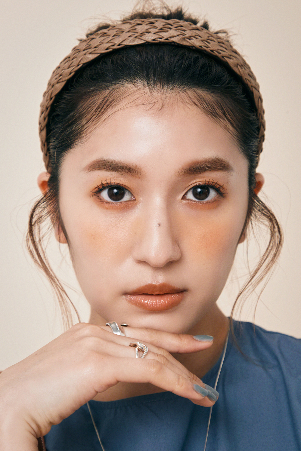 夏のムードを盛り上げたいなら、日本人の肌に馴染みやすいオレンジで作る、ヘルシーなワントーンメークがいちおし。いろんなアイテムを使うとちぐはぐな印象になりがちなので、アイシャドウにもチークにもなるマルチスティックを使うのが失敗しないためのテクニック。トレンドアイテム・カチューシャでおでこを出したら、アイブロウパウダーで眉にさりげなく色を乗せるとメリハリが出て美人度アップ。オレンジのアイブロウパウダーを眉毛の間を埋めるように入れてアクセントに。