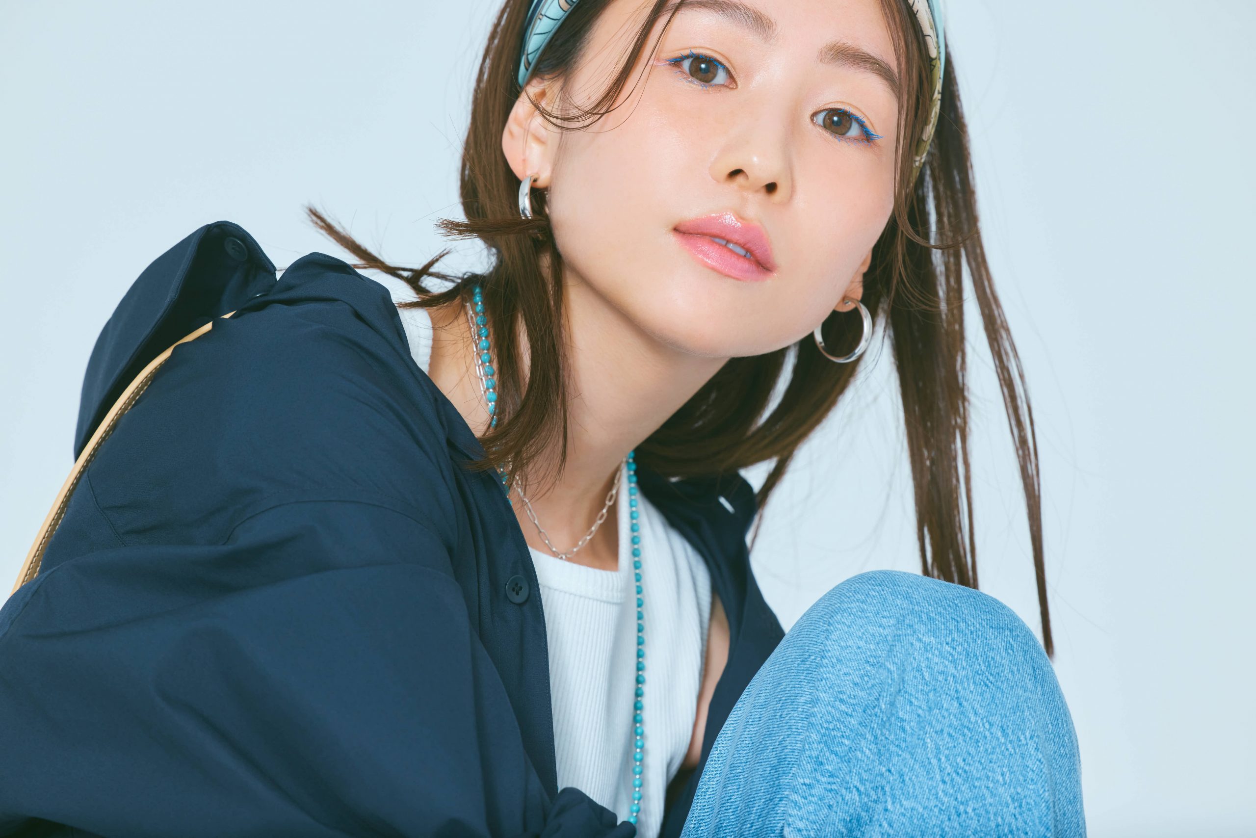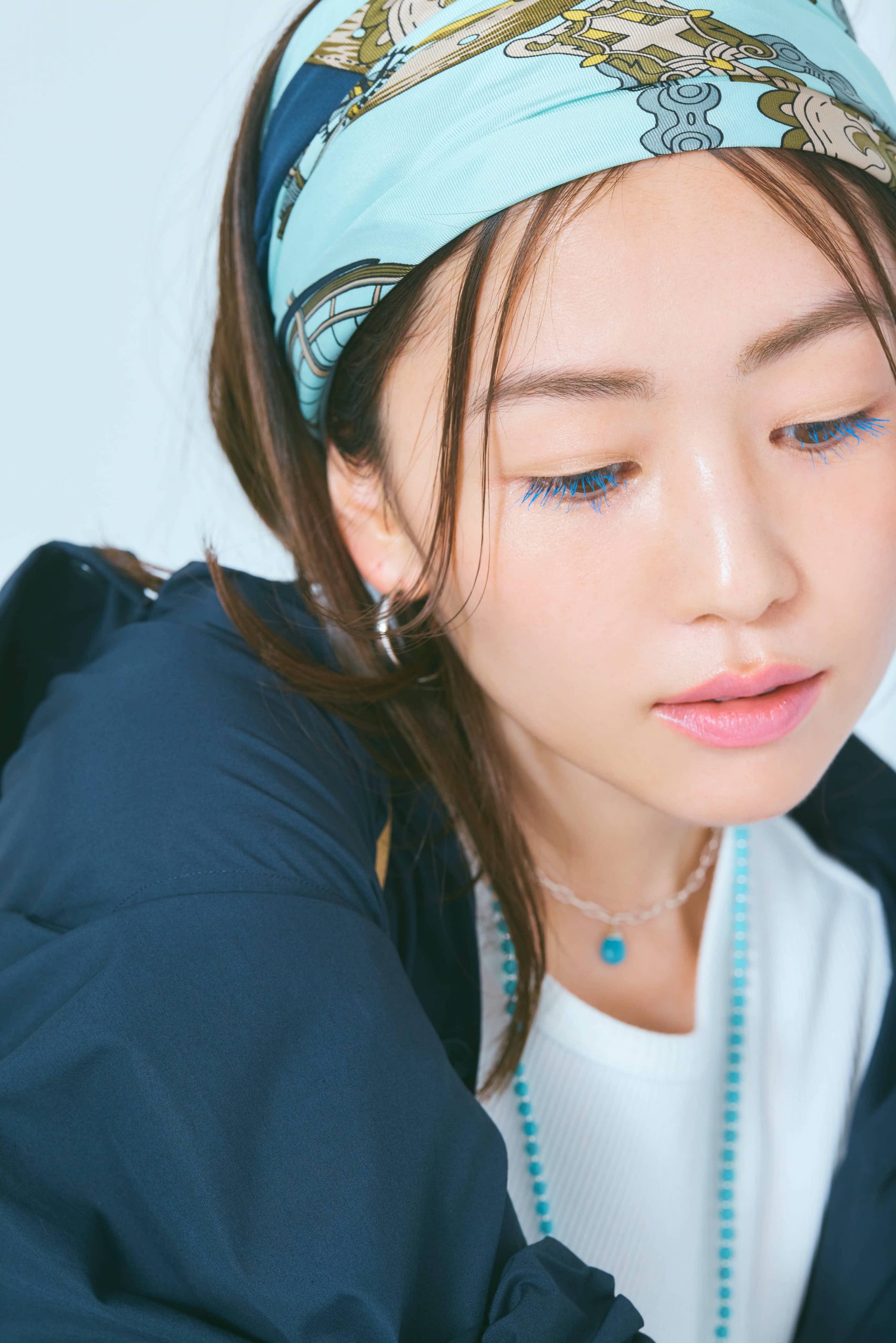 デニムという定番アイテムだからこそ、ちょっとした“挑戦”や“遊び心”がほしいもの。まずファッションではデニムとネイビーシャツ、それにターコイズアクセ———全身ワントーンにするよりも気楽に挑戦できる、ブルー系のリンクコーデ! さらにメークでも発色のいいブルーのマスカラを投入。暑い夏の日にぴったりの爽やかな装いが完成します。