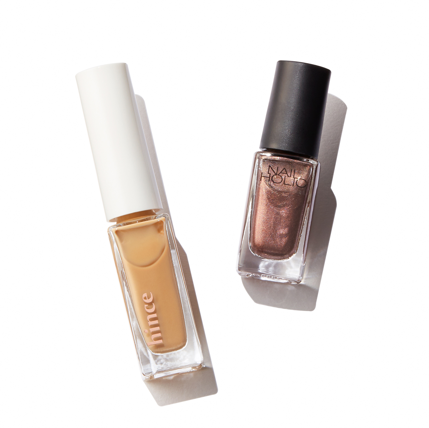 セルフで作ろうとすると、ずれたりにじんだりしてなかなかうまくいかないフレンチネイル。特に利き手と逆の手は、時間もかかるしラインがぶれる…そんなときは小道具に頼って仕上げましょう。何度も見つめてしまうくらい綺麗なフレンチネイルが出来上がります。フレンチ部分にメタリックブロンズをあしらえば、普段のフレンチネイルとは一味違う“大人シック”な雰囲気に!