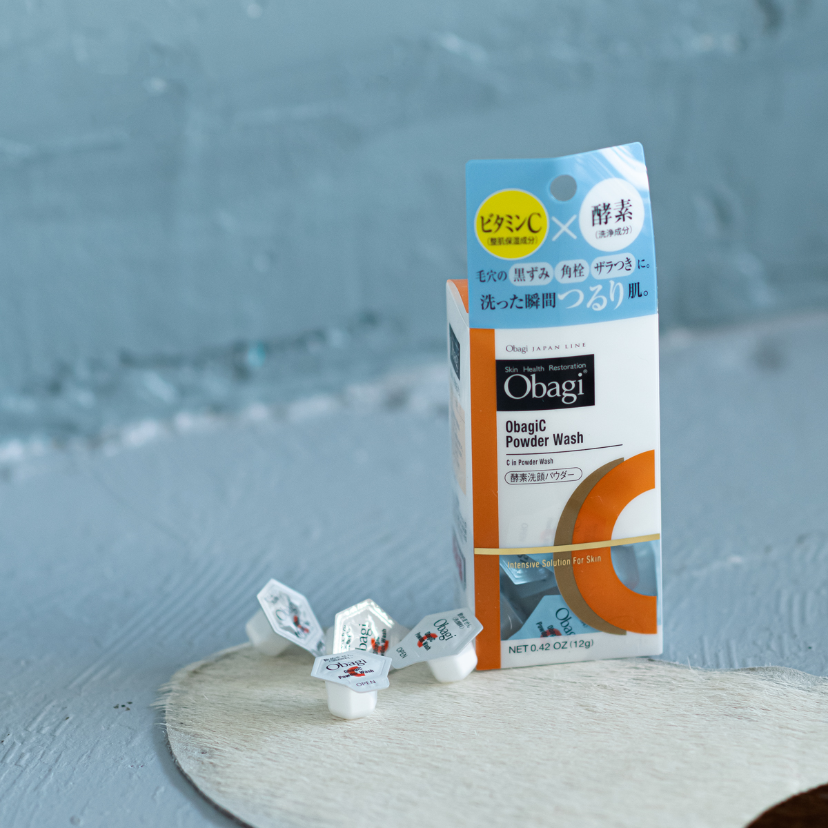 毛穴の黒ずみや角栓の詰まりが気になる人に。一度の洗顔でつるんとした毛穴レスな肌が叶います。オバジC 酵素洗顔パウダー 0.4g×30個¥1.980(ロート製薬)