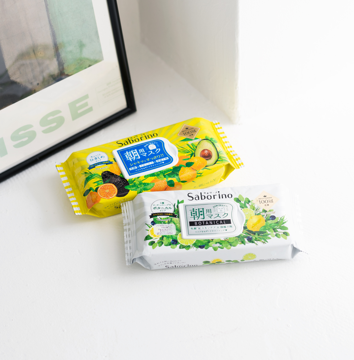 上から、シートマスク一枚で洗顔とスキンケア、保湿下地が完了! サボリーノ 目ざまシート32枚入り304ml、すっきりクールな使い心地なんいオイルフリー、アルコールフリーなのが嬉しい。ボタニカルタイプ 28枚入り 272ml各¥1,430(ともにBCLカンパニー)