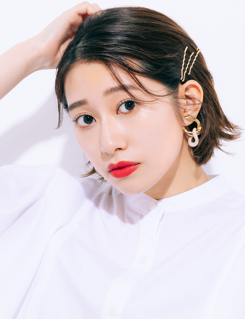 ブラウス¥8,800(エル ジーナシス/アダストリア)イヤリング¥3,190リング¥1,980(ともにアネモネ/サンポークリエイト)ブレスレット¥16,720(エムシー スタジオ/ZUTTOHOLIC)