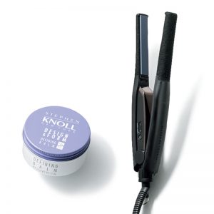 〈右から〉短い髪も安心して巻けます。プロフェッショナル ヘアーアイロンNIS2000¥8,778〈編集部調べ〉(テスコム)髪に立体感が出ます。スティーブンノル ディファイニング バーム50g¥1,595〈編集部調べ〉(コーセー)