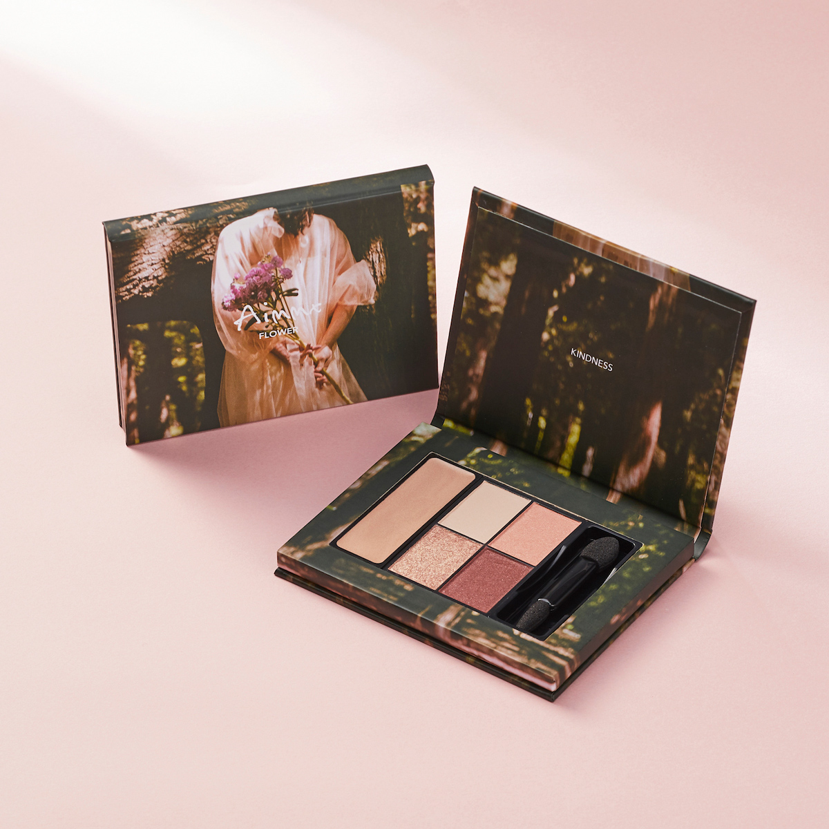第一弾アイテムとして登場するのは、チェイサー/ハイライターを含む5色で構成されるアイシャドウパレット2種。できる限り添加物を除いた無添加処方に加え、植物由来の保湿成分・スクワランを配合していたり、環境に配慮して紙製パッケージを採用するなど、細やかなこだわりも満載。高密着&大人のツヤ感が簡単に叶い、使い心地も◎!