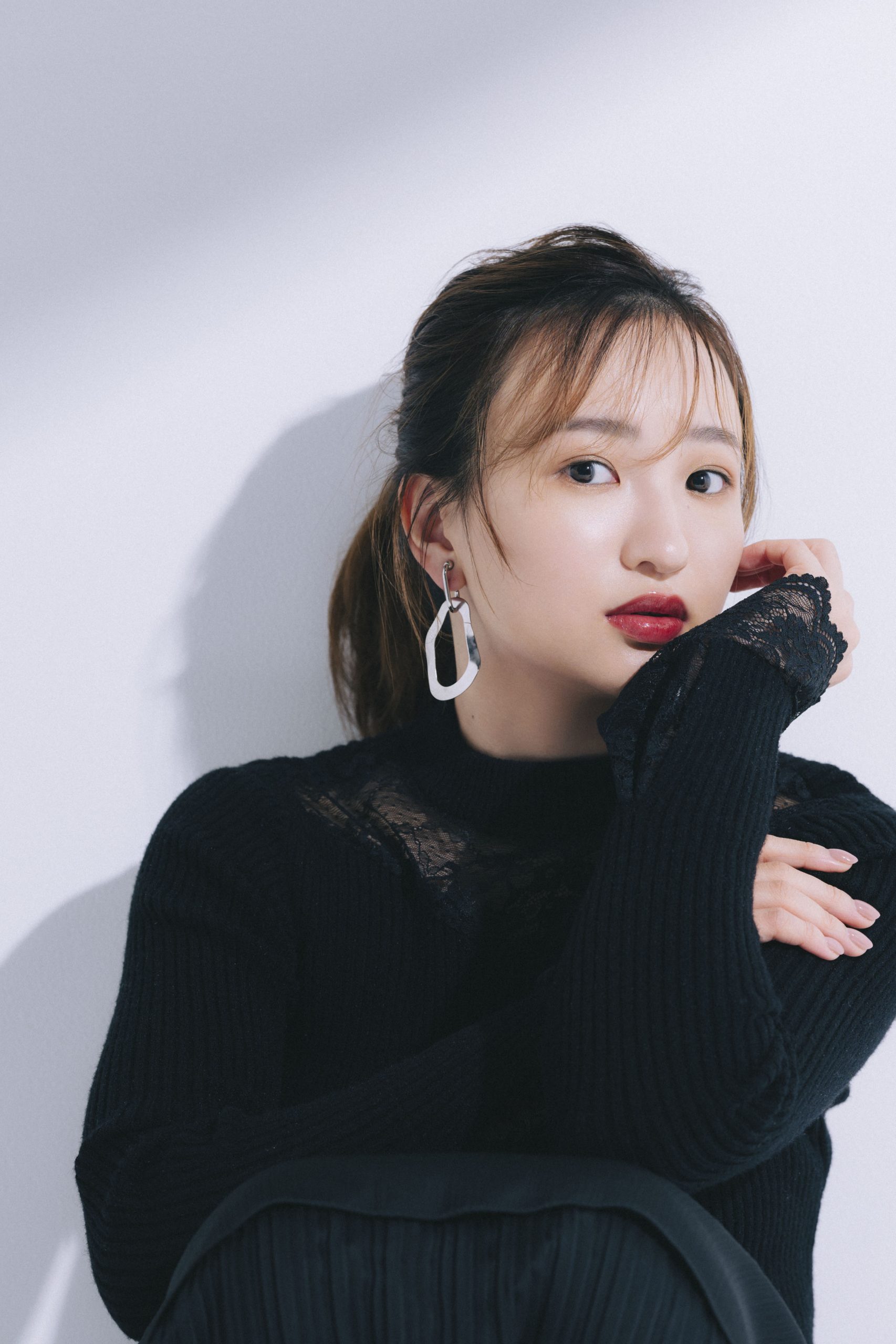 ニット¥6,600(リゼクシー/リゼクシー 渋谷109店)イヤリング¥9,790(オクト/フォーティーン ショールーム)スカート/スタイリスト私物