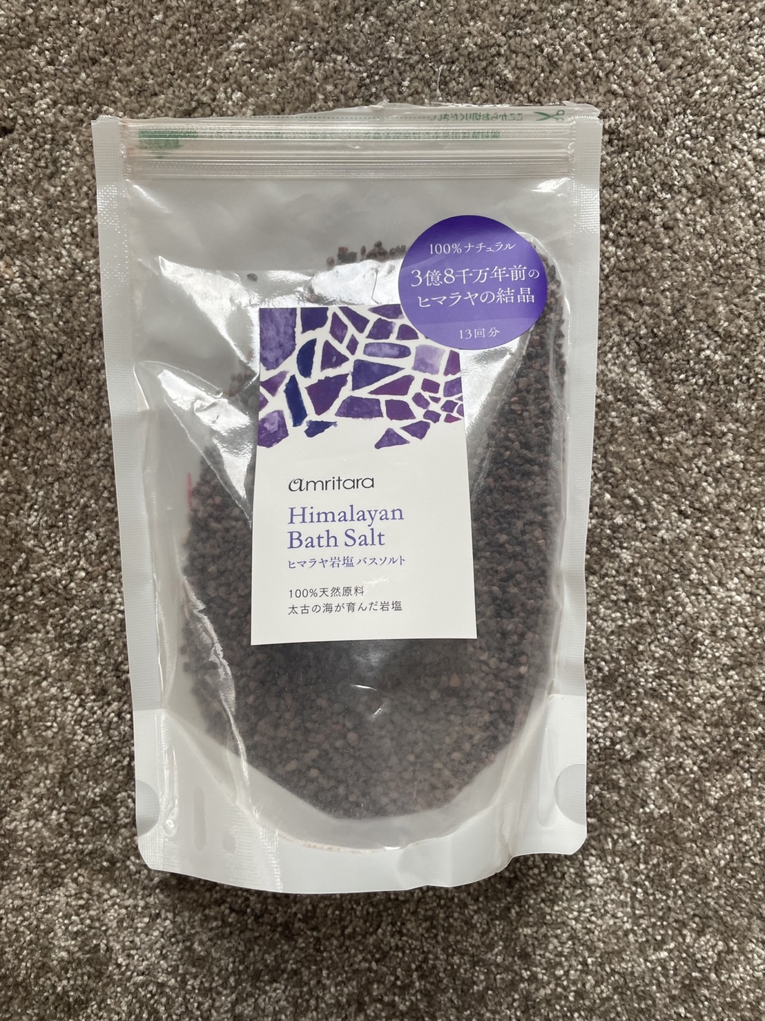 「お風呂でしっかり汗をかきたいときは岩塩! アムリターラの『ヒマラヤ岩塩バスソルト』を愛用しています。デトックス効果抜群です。時間にゆとりがある日は湯船に浸かったり出たりしながら、1時間くらい」