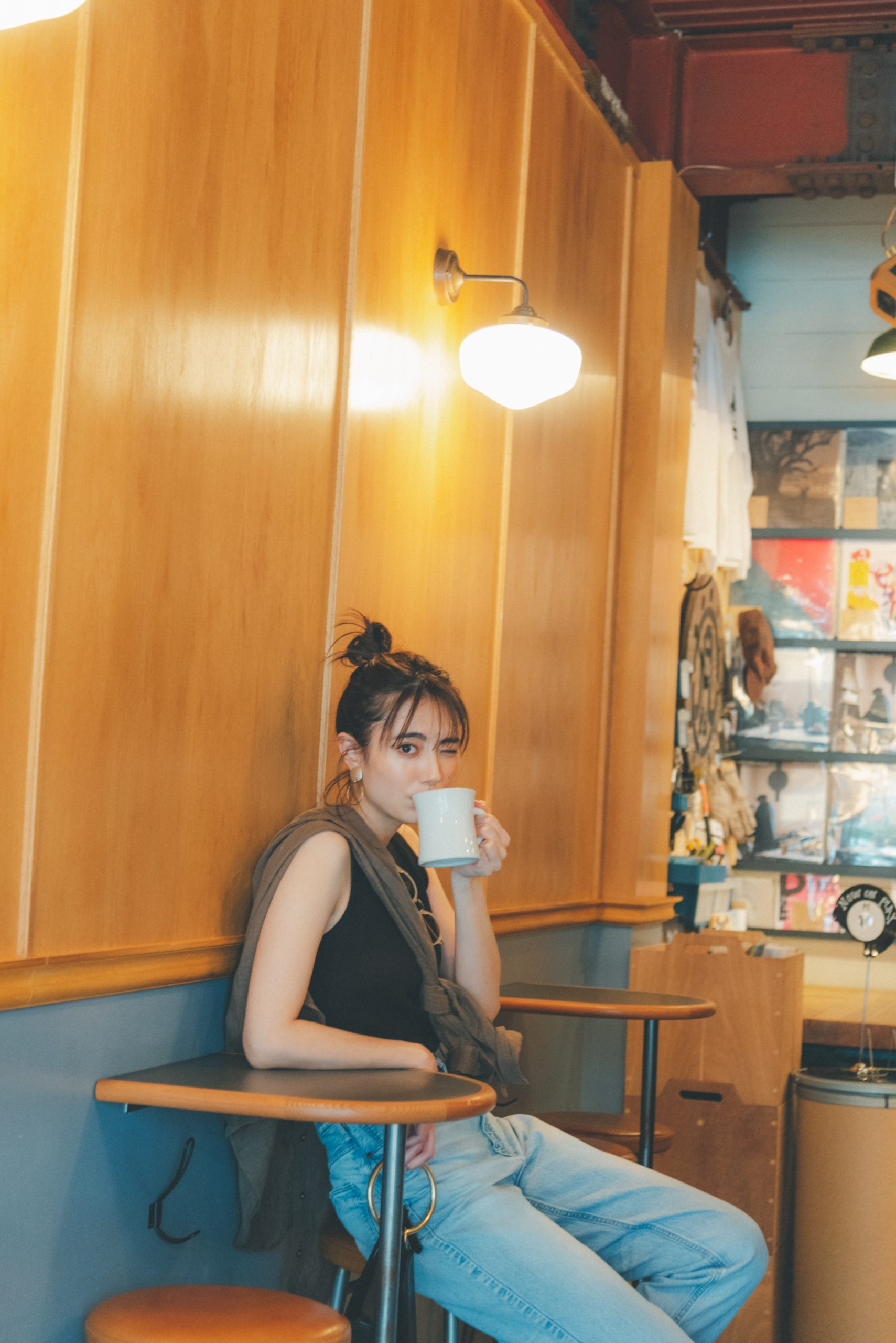 カットソー¥8,910(アンクレイヴ ホワイト/オンワード樫山)シャツ¥25,300(エリオポール/エリオポール代官山)デニムパンツ¥25,300(アッパーハイツ/ゲストリスト)バッグ¥38,500(オルセット/アッシュプラスエリオトロープ)サンダル¥24,200(ツル バイ マリコ オイカワ)サングラス¥8,800(Zoff/ゾフ カスタマーサポート)イヤリング¥8,800(マージョリー・ベア/ココシュニック オンキッチュ 有楽町マルイ店)