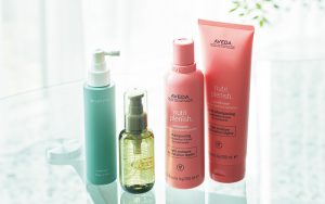 オメガ5を豊富に含むオーガニック ザクロオイルなどのスーパーフード由来の植物成分が高機能な潤いを与えて、乾燥でパサついた髪を上質なツヤのある健康髪に仕上げます。シャンプー ライト250㎖ ¥4,290コンディショナー ライト250㎖ ¥4,510(ともにアヴェダ)