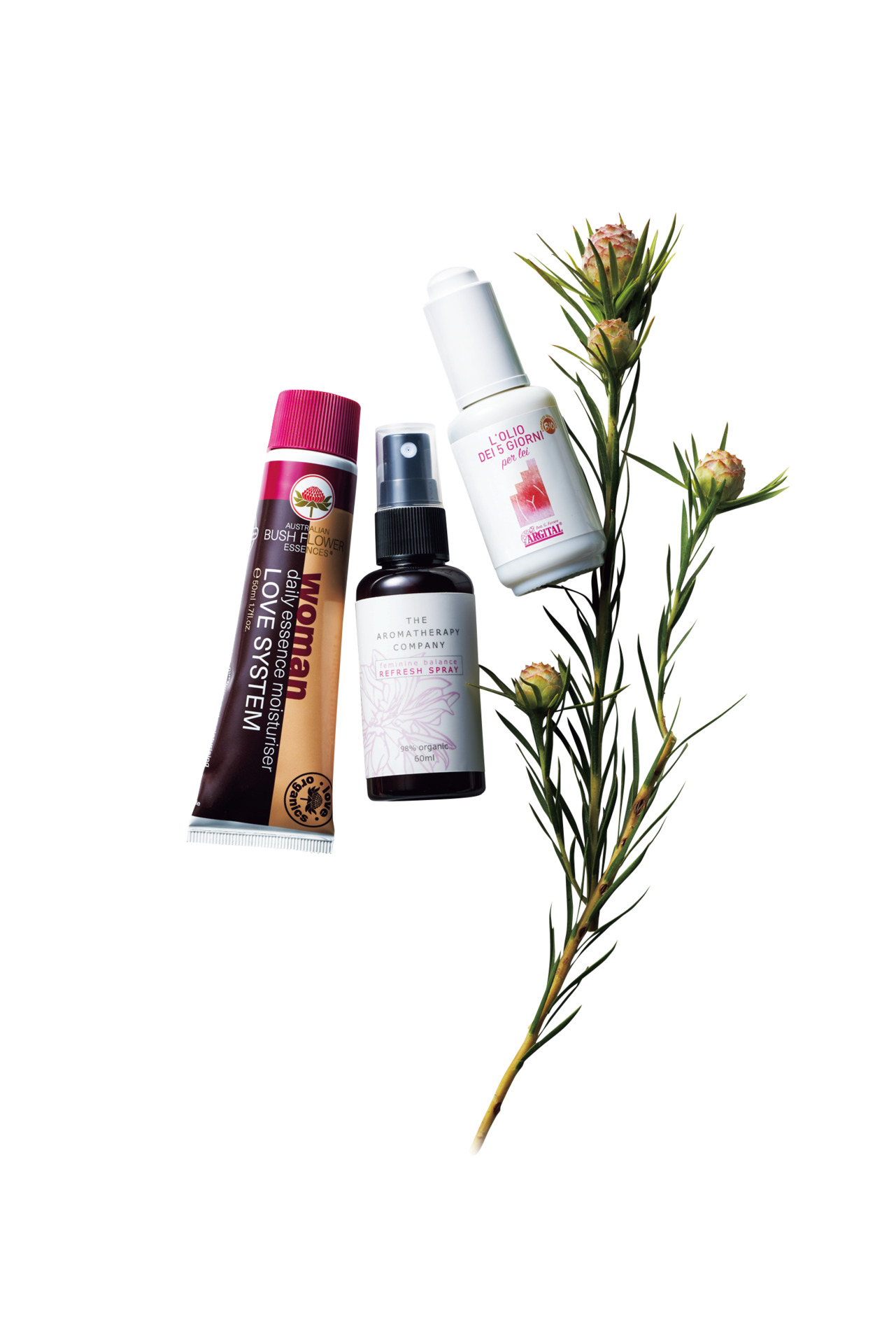 ❶特別な配合のオイルはお腹や腰に塗ると温まり、生理の5日間のどんより感を払拭。生理痛が軽くなると口コミで人気。アルジタル 5DAYオイル30㎖ ¥3,600(石澤研究所)❷おりものや生理中の不快な臭いをローズの香りでリフレッシュ。脇や汗にも使える。アロマセラピー カンパニー フェミニンリフレッシュ 60㎖ ¥2,350(コスメキッチン)❸女性特有の不調なときだけでなく、女らしさが欲しいときにも。オーストラリアンブッシュフラワーエッセンス ウーマンクリーム 50g ¥3,500(ネイチャーワールド)