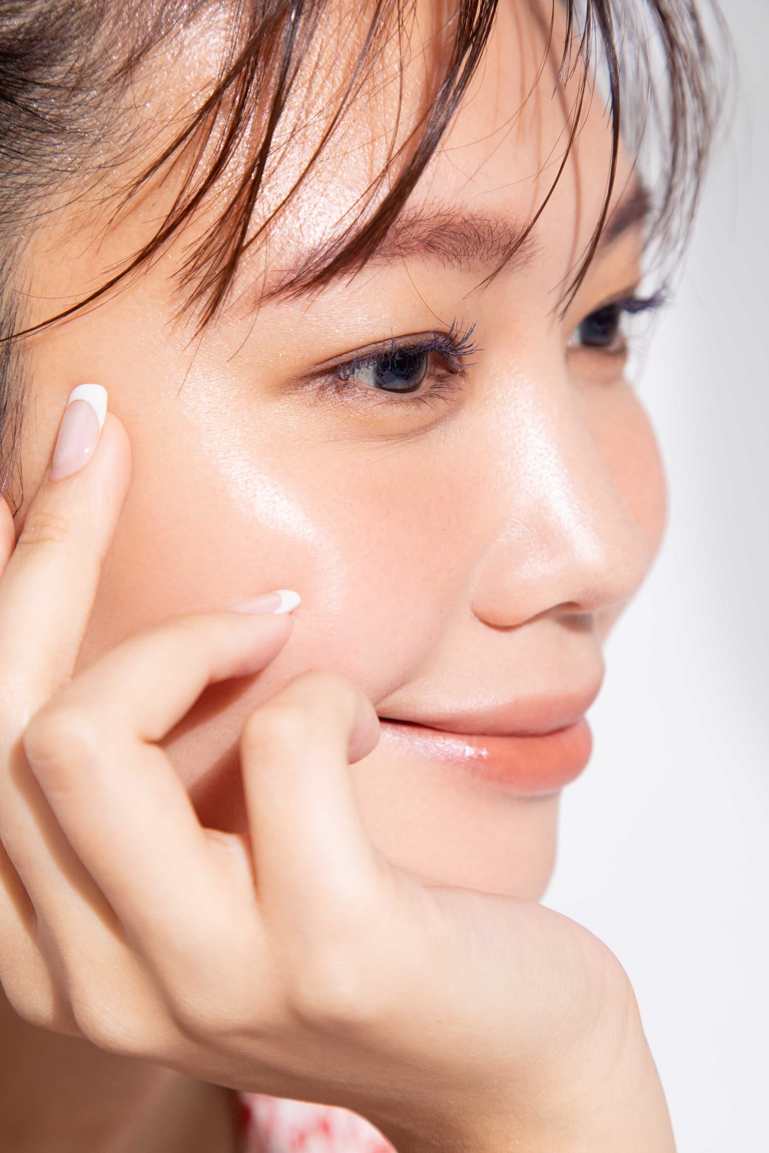 目を囲むまつ毛を寒色のインディゴカラーにすると、一見黒に見えて目力はそのまま、ブルーの効果で白目がクリアに見え透明感がUP。使用したマスカラは「hinceニュアンビエンスカラーマスカラ 03 アンディファインド」。