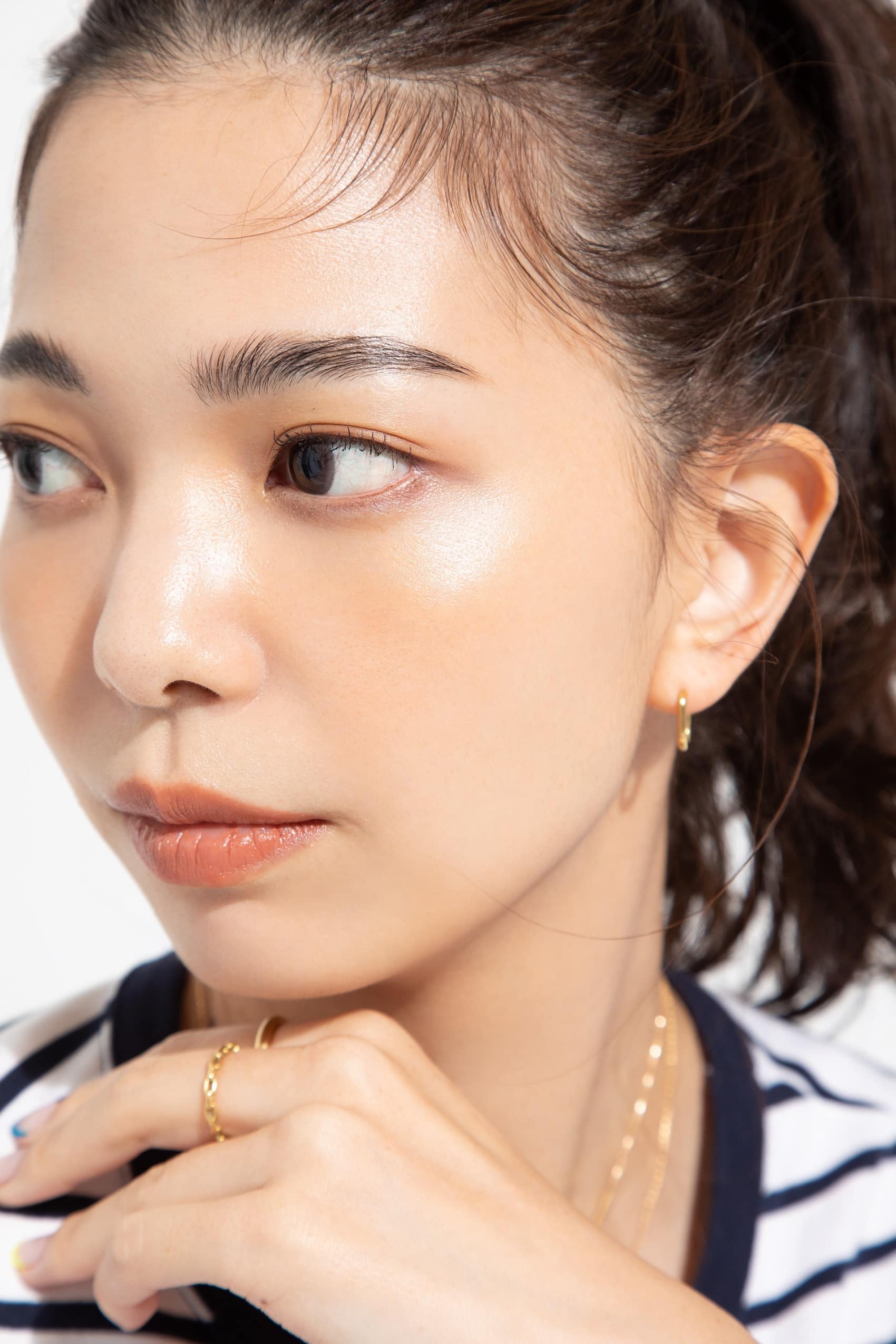 【メークポイント】ハイライトはホワイトを仕込んで透き通る肌に