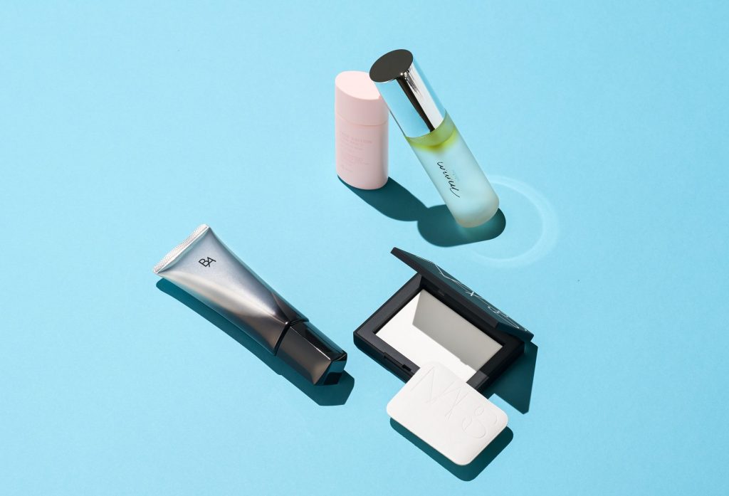 「スキンケアの延長線上のようなカラーレスの日焼け止めを塗り、顔中心部にのみトーンアップ系の皮脂崩れ防止下地を。ファンデーションは指か筆で薄く塗ったあとに水を絞ったスポンジでトントンとなじませ、お粉はパフで顔周りから徐々に中心部に向かってはたきます。さらに大きめのブラシに少量のお粉を含ませて、顔を磨くようにブラシを上下左右に動かすと◎。仕上げにフィックススプレーを使うと崩れにくさが断然UPします。あとはきちんと睡眠時間をとり、バランスのいい食事も大切。このバランスが整っていれば、皮脂崩れはある程度防止できますし、汗をかいてもきれいに自然にメークが崩れていくんです」