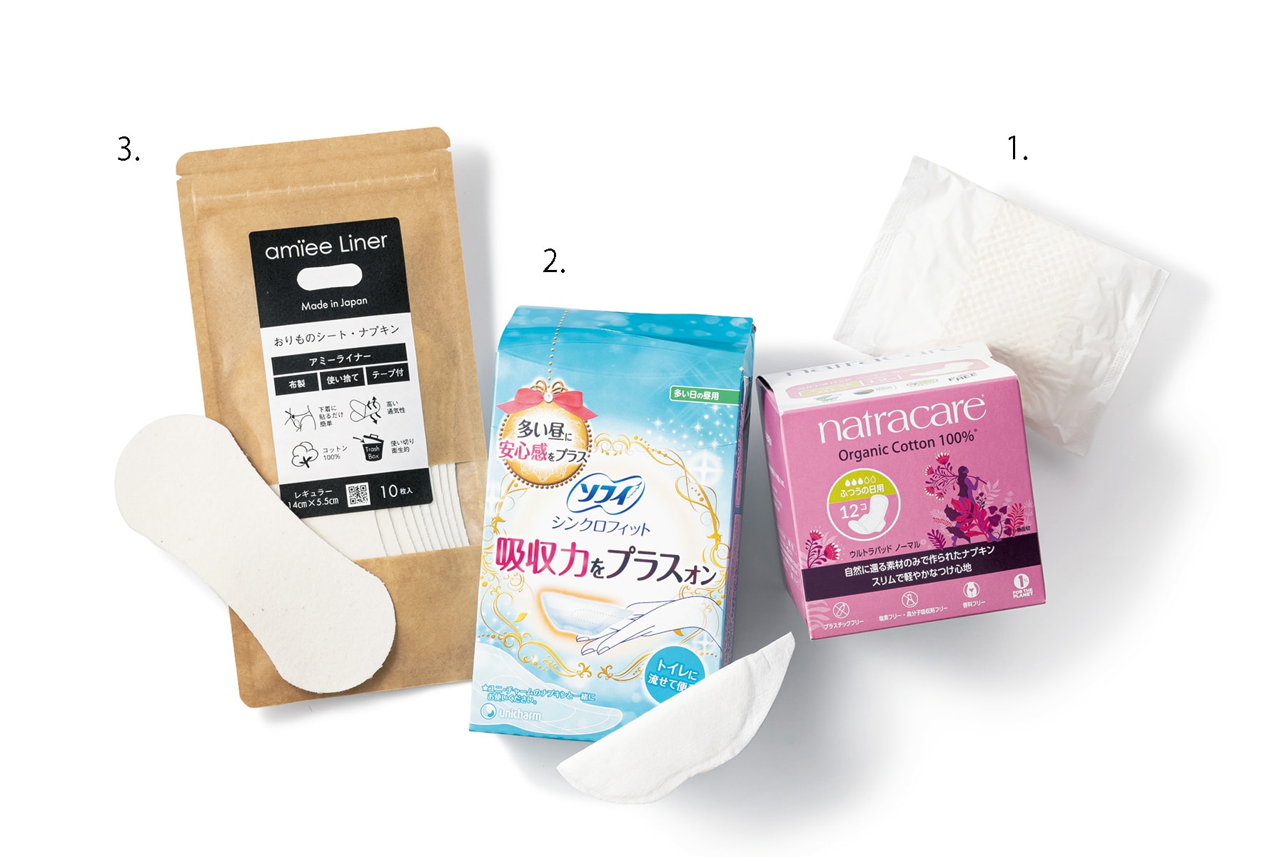 ナチュラルな素材で作られていても、吸水力の高いナプキンや便利な使い捨て布シートが続々登場。個人的に大好きでおすすめなのが、後ろ漏れの怖さから解放してくれる挟むタイプです!