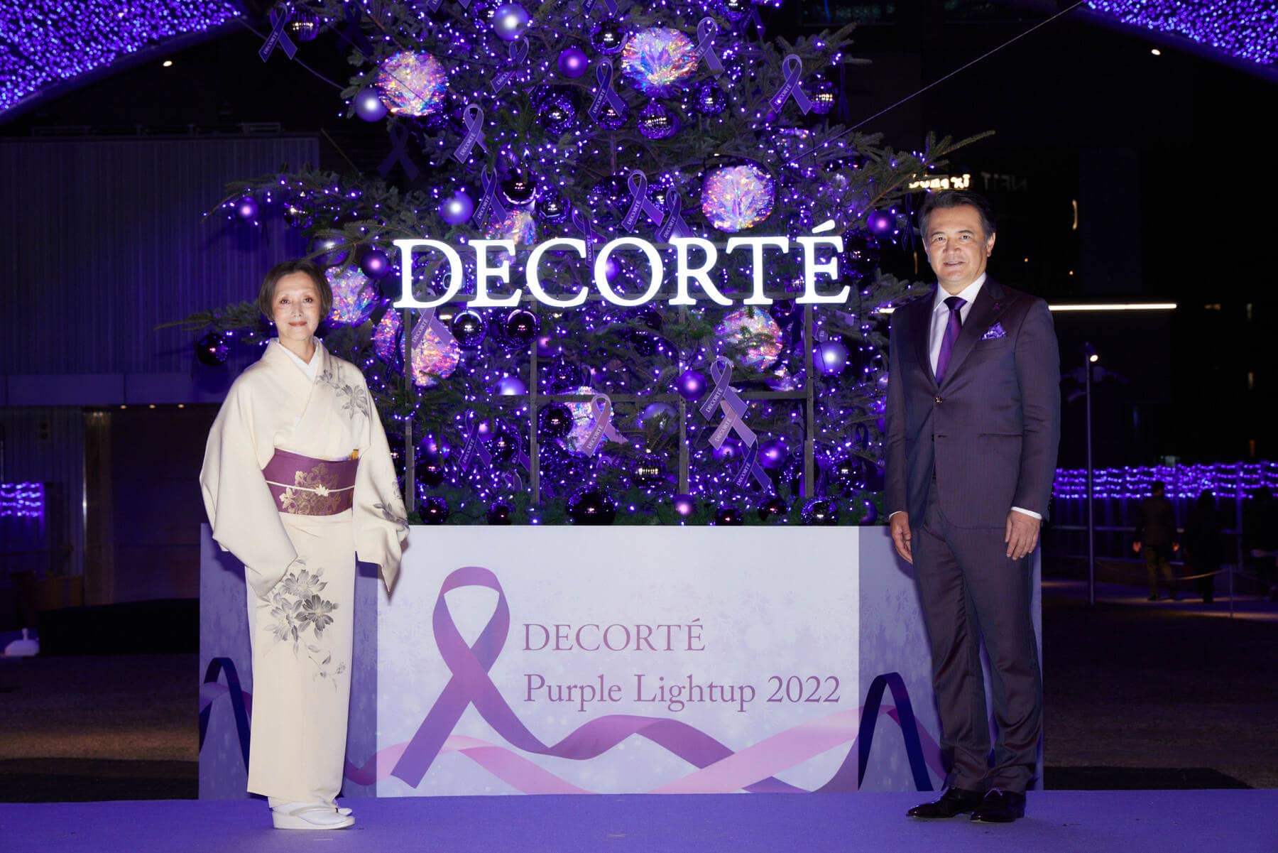 コスメデコルテは、「DECORTÉ PURPLE RIBBON PROJECT」において女性に対する暴力を無くす「パープルリボン運動」を推進。その一環として「 DECORTÉ Purple Lightup 2022」をMIYASHITA PARKの4階にて期間限定で開催しています。コスメデコルテを代表するリポソーム 美容液をイメージした、パープルのライトアップで渋谷の街を彩ります。