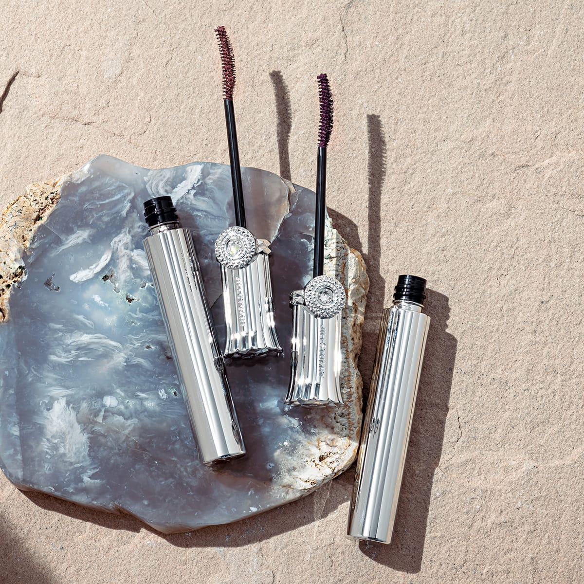 洒落たムードを目元に宿すカラーマスカラは、オフィスでも使えるかが色選びのポイントに。優しく女っぽい「02サクラカカオ」と引き締まる「04タイニーラベンダー」。左から02、04 各¥3,300(ともにジルスチュアート ビューティ)