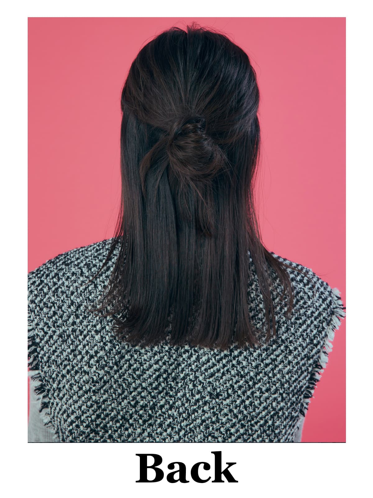年始のあるあるイベント、親戚へのご挨拶まわり。ボサボサヘアで出向くのはNGな一方、フォーマルすぎてもやりすぎ感があって気恥ずかしい。そんな日は、ヘアゴムとピンがひとつずつあればできる簡単アレンジがおすすめ。ささっと髪をまとめるだけで完成し、コーディネートを選ばないので覚えておくと重宝します。