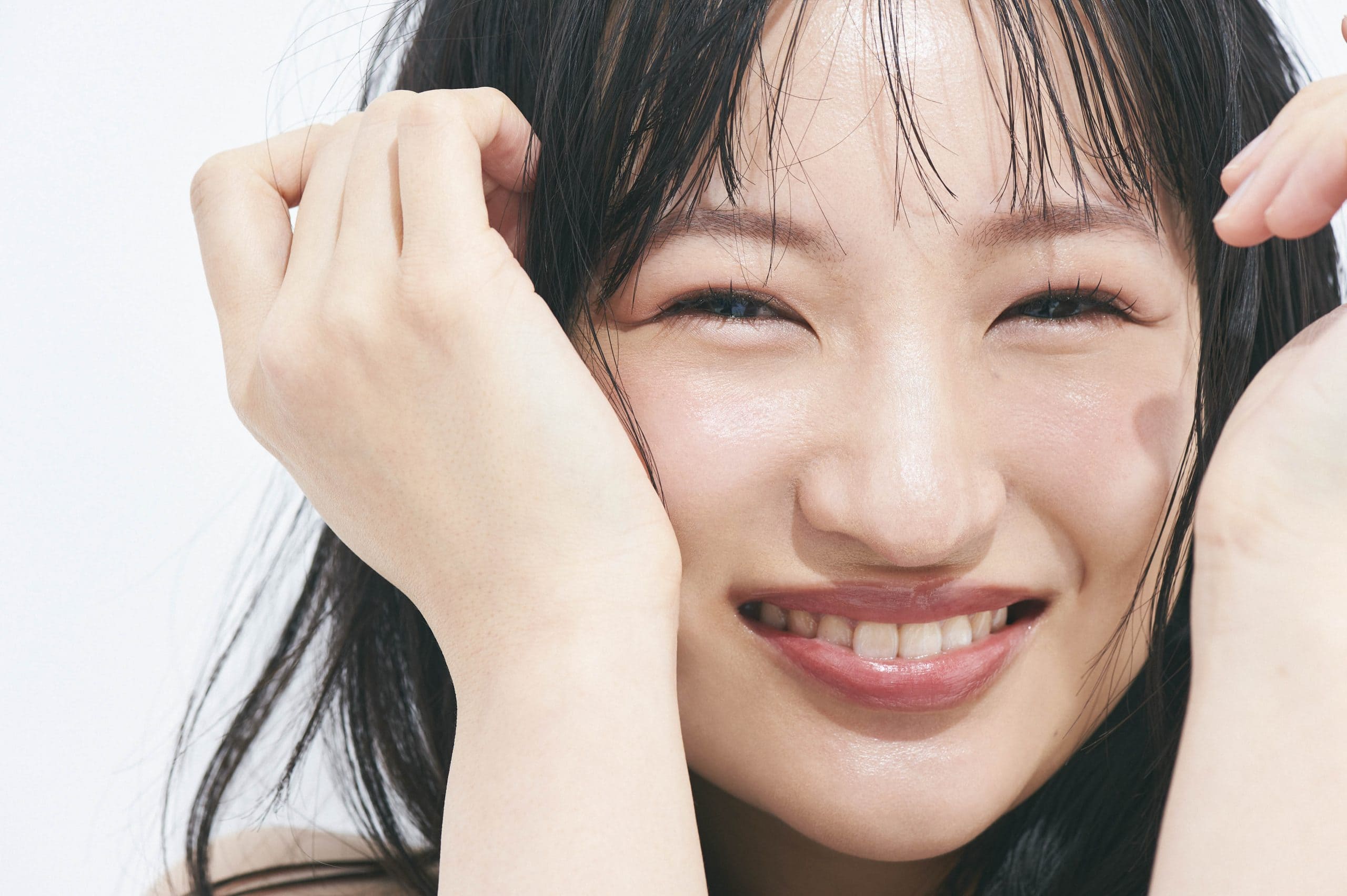 パウダーを使わずにリキッドのアイテムを使うことで、みずみずしい自然なツヤ感あふれる仕上がりに!フレッシュな印象の華さんと、とても相性のよい春メークです。