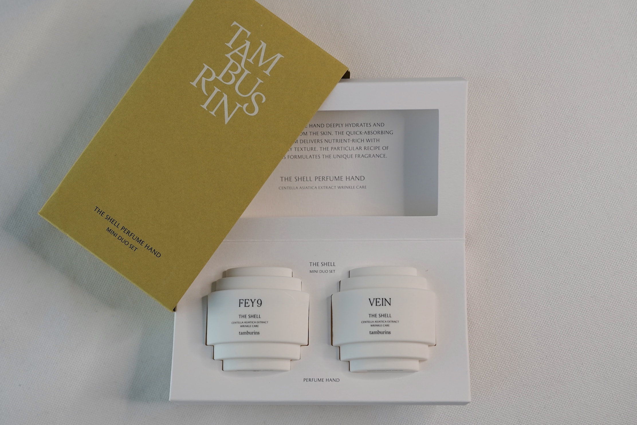 私のイチオシは、ハンドクリーム「The Shell Perfume Hand」。貝殻からインスピレーションを得たデザイン。そして、ミニサイズの15mlはとってもコンパクト。コロンとしたサイズ感とおしゃれなパッケージなので、バッグに入れておくだけで気分がアガるアイテムです。韓国のフラッグシップストアで、人気の2つの香りが入ったディスカバリーセットを購入しました。