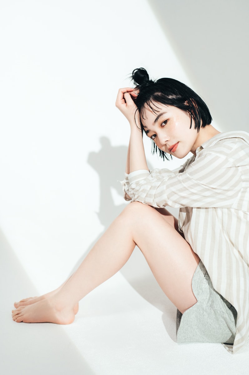 これ、実は私の意思ではなくて(笑)。4人のメンバー編成になった時、8年前かな。グループ全体でビジュアルを変えようとミーティングをしたんです。その時には「髪色は茶色のままで、長さはボブくらいにする?」と言われたのに、そのつもりで次の日に美容室に行ったら「黒髪にして前髪作ります」と急に言われて…(笑)。「Wow! 話が違う!」となりましたね。でも、「変えるんだったら思いっきり変えちゃおう、まわりを信じよう」と思って黒髪ボブにしてみたら、意外と自分でもしっくりきたんです。ひょんなことから今のスタイルになりましたが、それからはずっとこの髪型です。