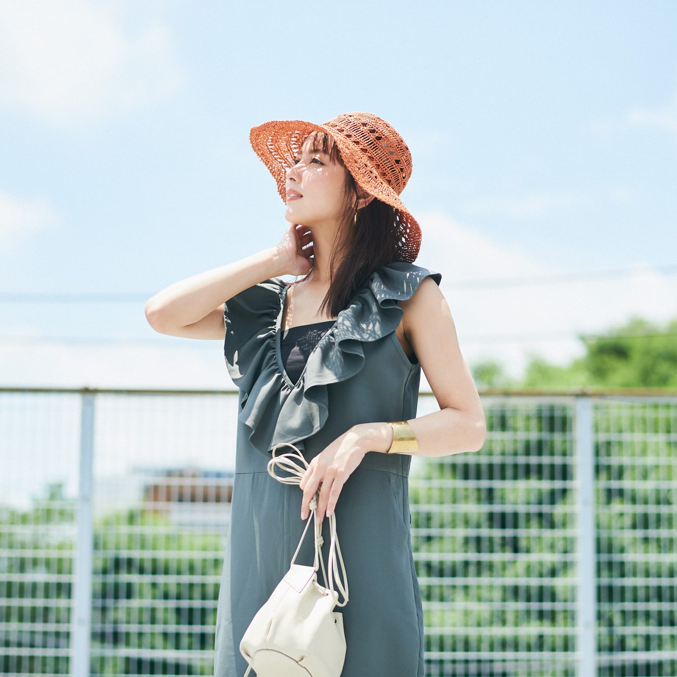 オールインワン¥3,790(神戸レタス)ハット¥5,500(キャセリーニ)バッグ¥35,000(バナナ・リパブリック))ピアス¥9,240(チビジュエルズ/チビジュエルズ・ジャパン)バングル¥18,260(SOKO/ZUTTOHOLIC)キャミソール/スタイリスト私物