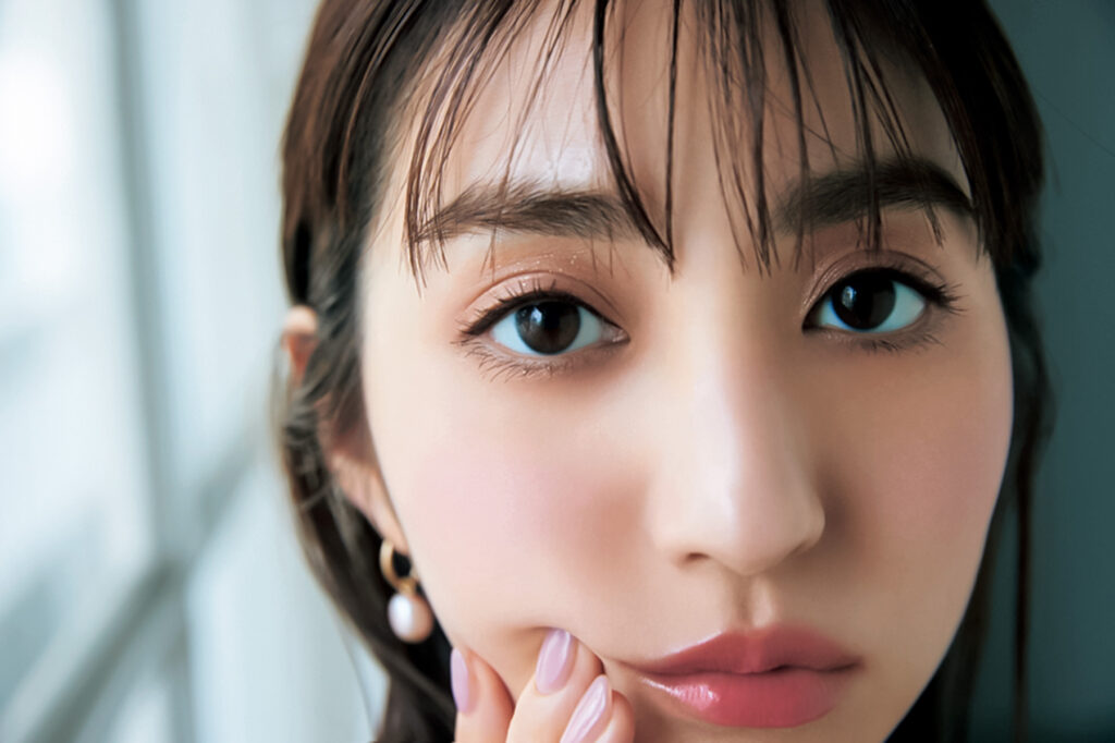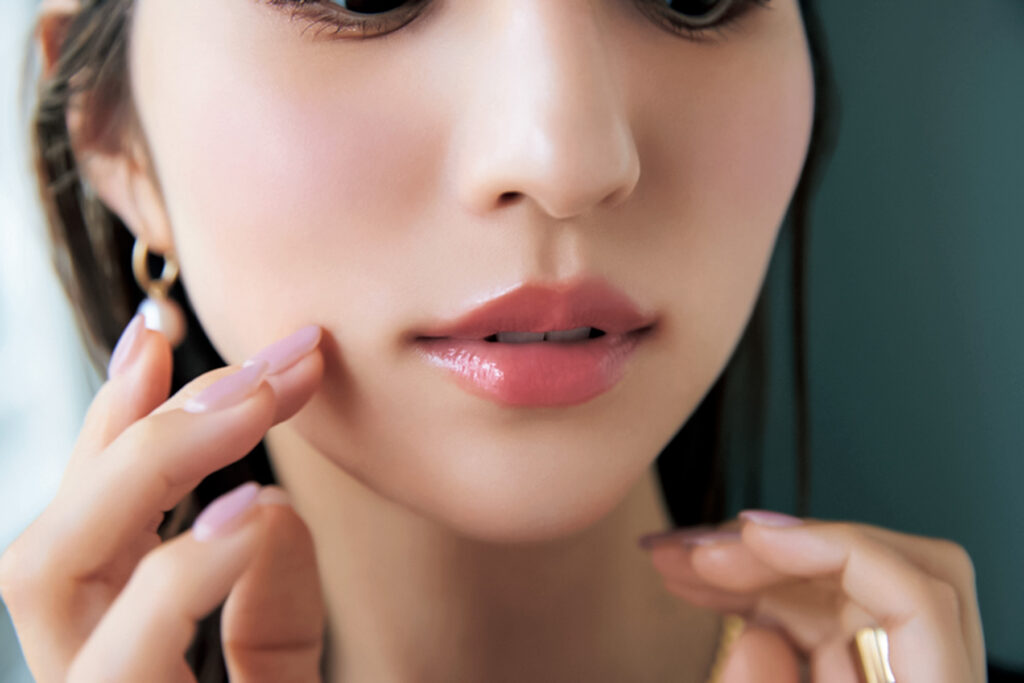 自然光の下でのデートや彼との距離が近い日は、肌の美しさをあと押しするようなメークを。青みピンクや艶のある質感のものはそれを簡単に叶えてくれる頼もしいアイテムです。