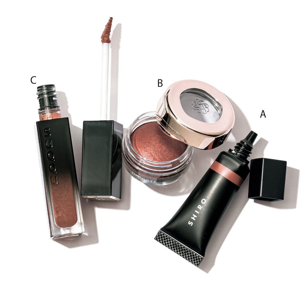C.柔らかなテクスチャーがまぶたに優しくフィット。テクニックいらずで吸引力のある目元に。ぼかしやすい処方で陰影もつくりやすい。リクイドラ スターアイズ 05¥4,070(SUQQU)(モデル使用コスメ)