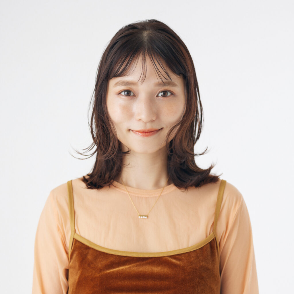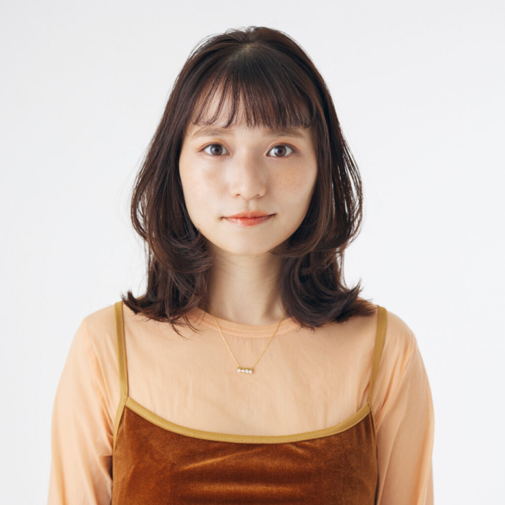 胸ロングから鎖骨レングスにカットし、さらに表面にレイヤーをイン。すると一気に髪の動きが増してカジュアルアップ。スタイリングは前髪と顔周り、表面は内巻き、毛先は外ハネに巻いて軽くくずします。甘め服もカジュアル服にも合わせやすい万能さもうれしい。