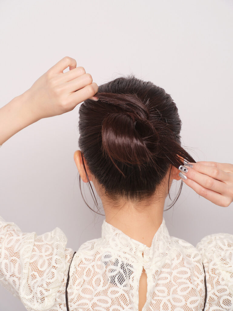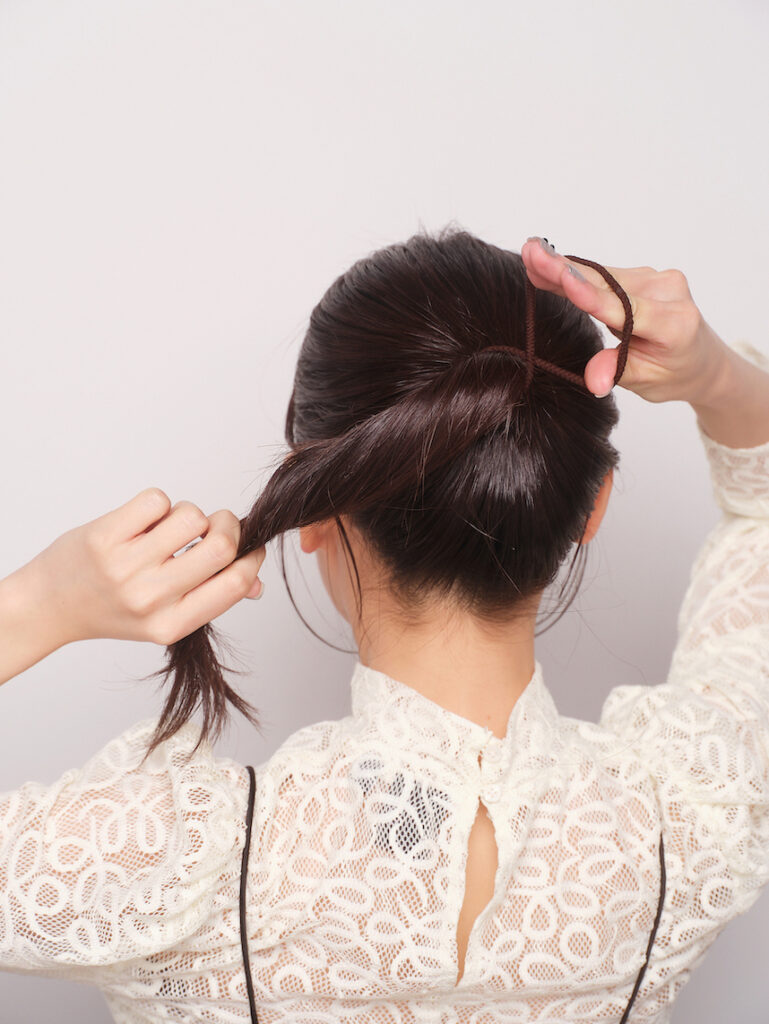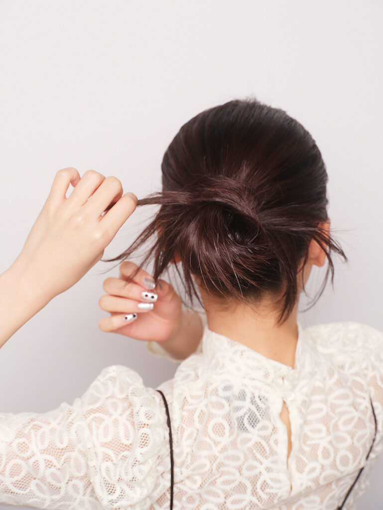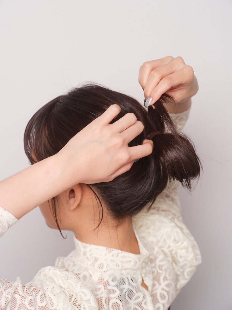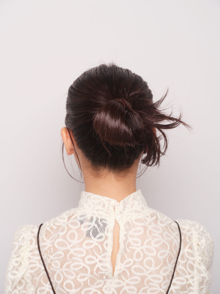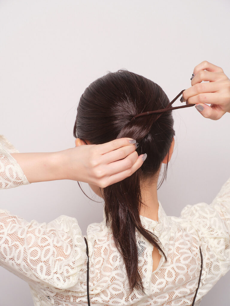 ゴム1本でつくる、いつものゴムシニヨンがベース!