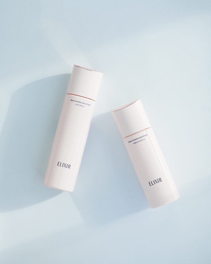 化粧水と乳液(各30㎖)のトライアルセットが限定発売中。エリクシールならではの大人の透明感とハリを体験して。