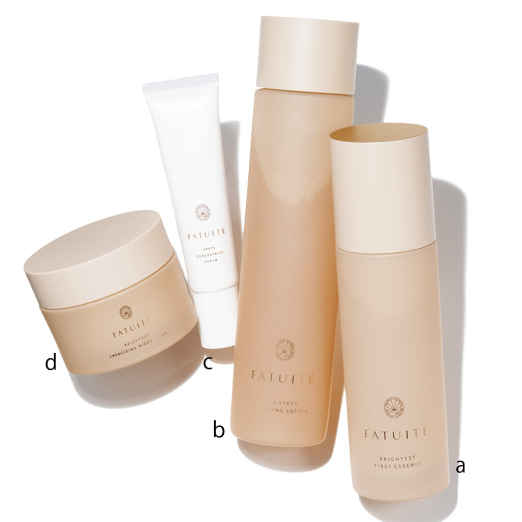 『透明感はメラニンケアだけでは手に入りません。黄ぐすみケアに角層のうるおいケア、毛穴ケアなど多角的に!透明感の多角的ケアに対応するのがFATUITE。普段はシンプルな4ステップ、ピーリングとマスクをセット使いすると、さらに透明感を実感。火照るとメラニン生成指令が出るので、肌の表面温度は一定に。』