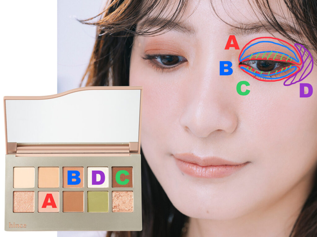 「笹崎さんが愛用中というhinceのアイシャドウパレット。無難になりがちな茶系シャドウも、使い方次第で“いつもと違う”アップデートされた印象になります。また笹崎さんの場合、もちろん顔が大きいわけではないですが、チークを使っていないことで顔の余白が気になります。チークも投入しましょう!」